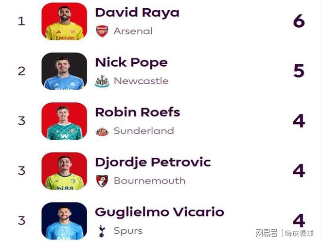 不仅如此,新赛季的13场比赛中,阿森纳只有3个失球,分别被利物浦、曼城和纽卡斯尔各打进一球,换来仅有2场无法取胜的结果。换言之,只要不失球,阿森纳就一定能够获得比赛的胜利。自然而然,在英超官方的零封数据统计中,拉亚以6次零失球的数据,在金手套的奖项中暂时领先,排在第二名是纽卡斯尔的波普。